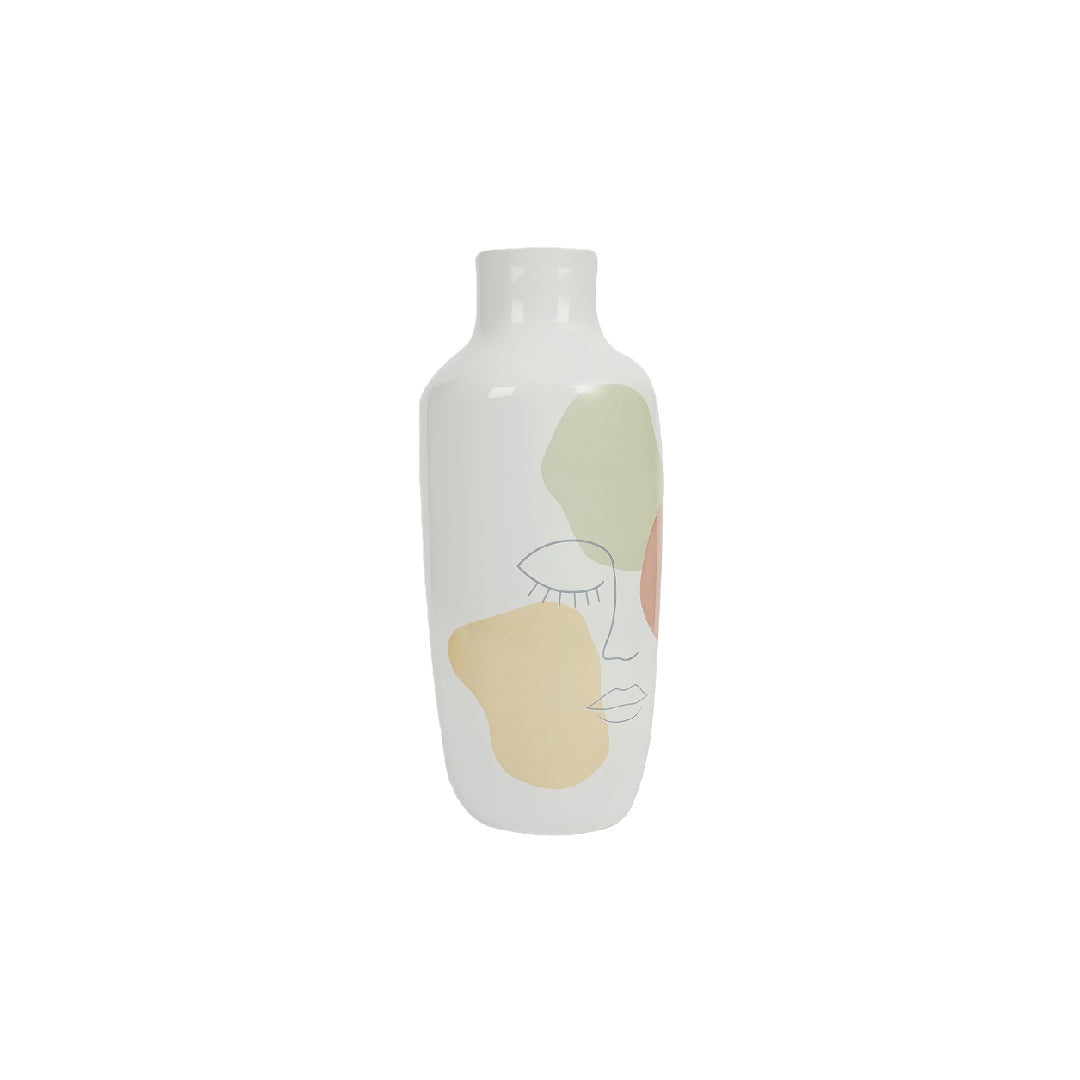 Modern Abstract Face Art Ceramic Vase - Minimalist White Decorative Vase with Line Drawing